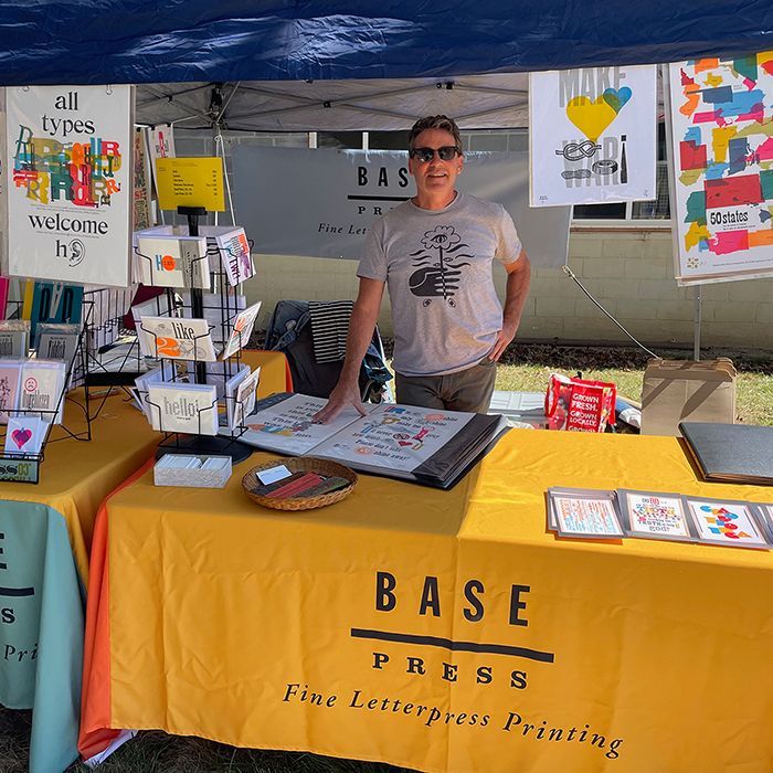 Find Base Press at the Chesapeake Print & Book Arts Fair on May 9, 11am–4pm, on the 200 block of N. Washington Street in Havre de Grace, MD. Admission is free — learn more at chesapeakeprintersfair.com.